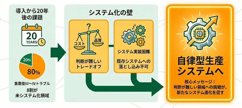 こればかりは計算資源の問題なので、当時対処できていなくてもしょうがありません。トレードオフの対処するために開発されたのが「自律型生産システム」です。